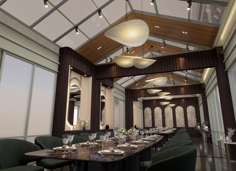 The restaurant features a modern concept that combines natural wood elements and exposed brick, creating a warm and contemporary atmosphere that invites the palate. |